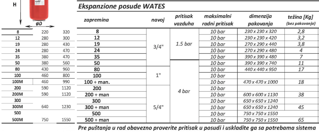 Posude od 80 i više litara sa donjim priključkom imaju manometar za kontrolu pritiska od 0 do 10 bara.