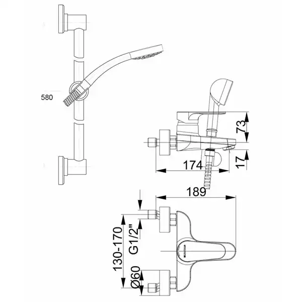 HERZ Infinity set 3 u 1 Slavina za lavabo-za kadu-klizna šipka-ručica i crevo 00059