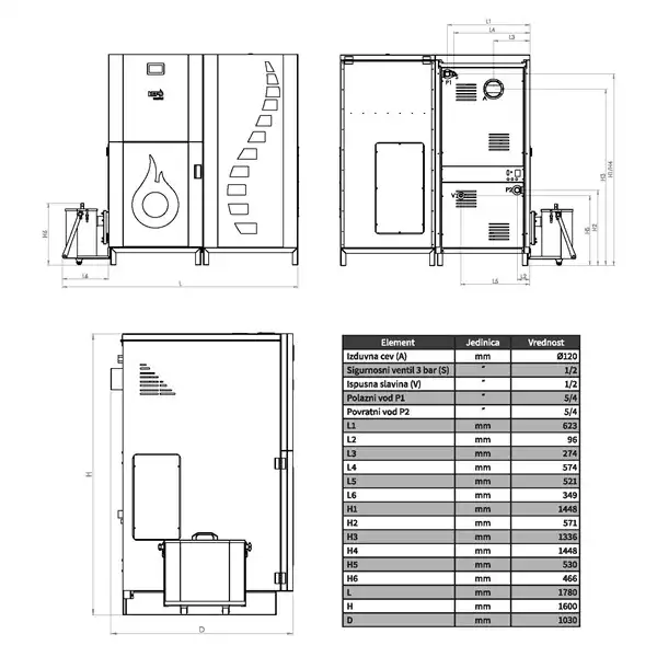 | Prečnik dimovodnih cevi | mm | 120 |