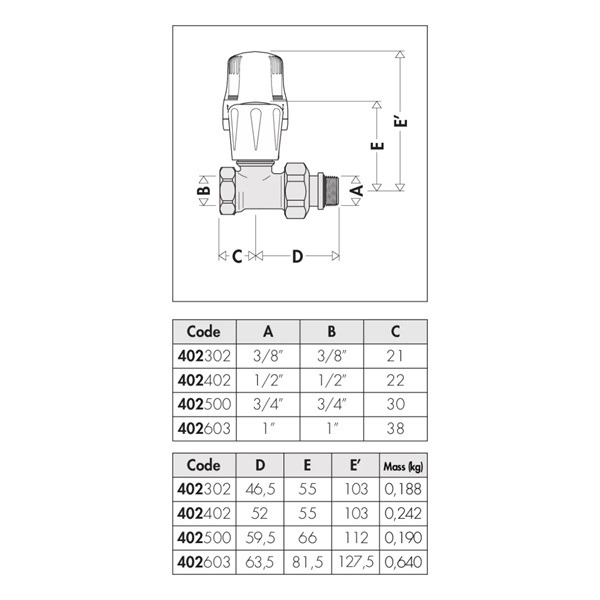 Radijatorski ventil CALEFFI Termo 402 prav 3/4″