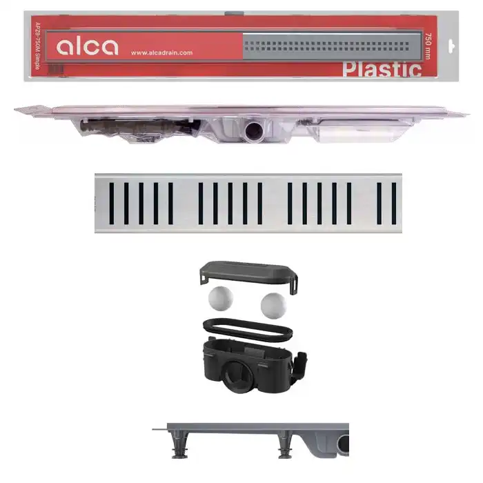 Napravljene su od visoko izdržljive plastike koja je otporna na mraz i hemikalije. Visina ugradnje od 62 mm. Podesive plastične sidrene noge 0–35 mm koje omogućavaju brzu i praktičnu ugradnju, uključujući precizno podešavanje potrebnog nivoa. Visoka otpornost na hemikalije. Sigurna veza sa sistemom građevinske hidroizolacije. Kombinovani sifon za mirise (sopstveno zaštićeno patentno rešenje) pruža zaštitu od mirisa iz kanalizacije čak i nakon što se voda isuši iz sifona. Mehanički čisteći sifon do odvodne cevi. Rešetka je uključena u pakovanju. Samolepljiva traka za kvalitetnu hidroizolaciju. Materijal: polipropilen ispunjen talkom otporan na mehanička, hemijska i termička oštećenja