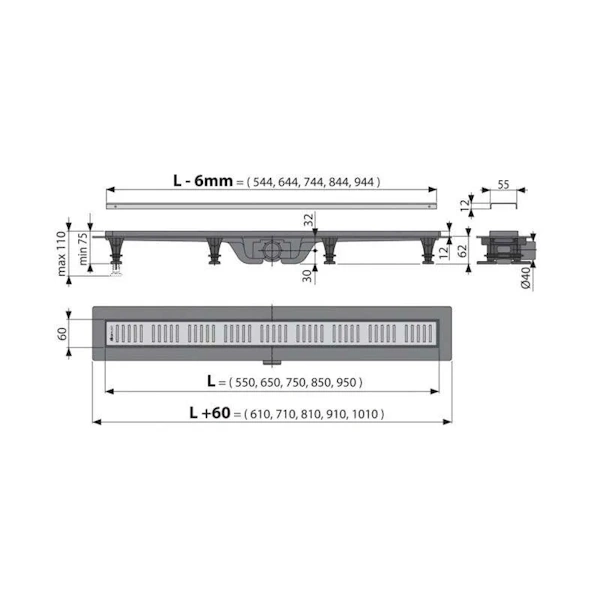 Naziv: Tuš kanalica sa rešetkom APZ10-550 mm set Alca plast
