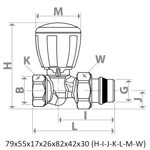 Ventil radijatorski 1/2″ prav termo GIACOMINI