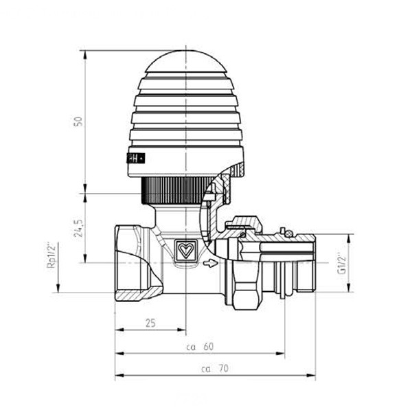 Ventil radijatorski 1/2″ prav termo PROJECT HERZ